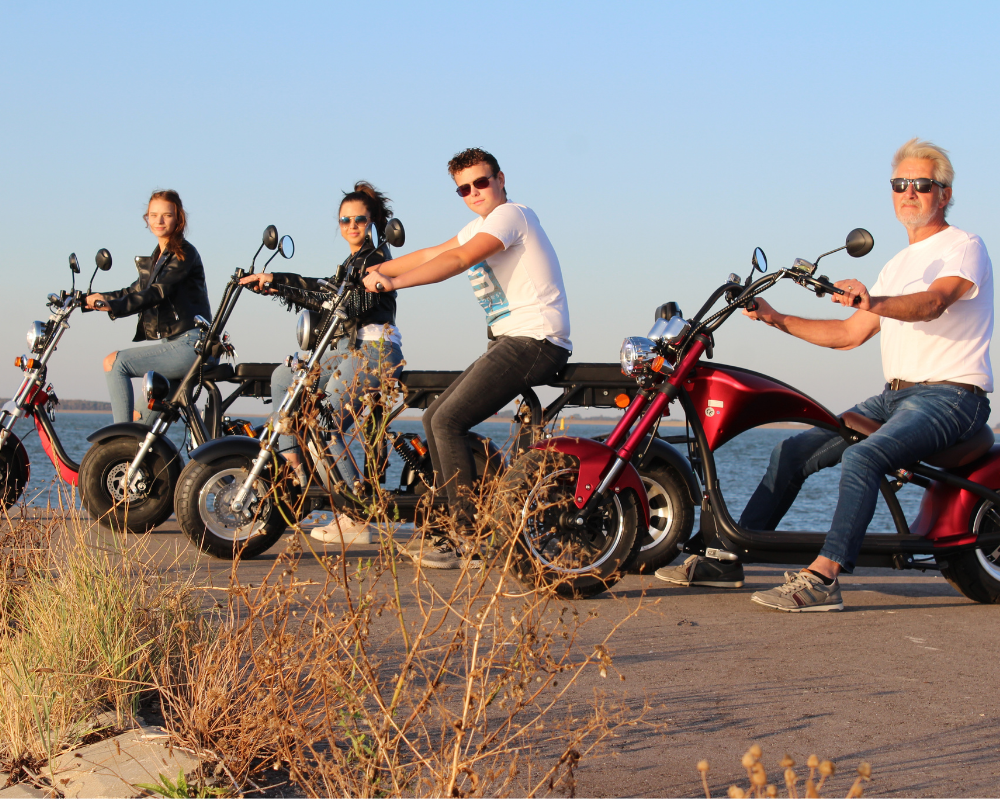 Op onze sportieve E-scooters zweef jij comfortabel en geruisloos over het asfalt, voel je de wind door je haren en geniet van al het moois wat onze prachtige omgeving te bieden heeft!