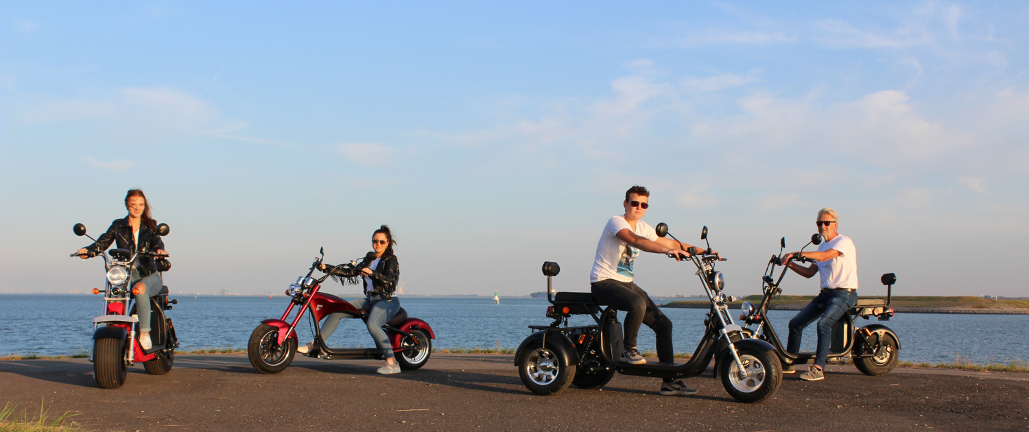 We hebben bewust gekozen voor vier verschillende modellen zodat je zelf de keuze kan maken welke scooter het beste bij jou past. De scooters hebben een stoere uitstraling en zijn allemaal voorzien van extra dikke banden en voor/achter vering waardoor ze zeer comfortabel rijden!
